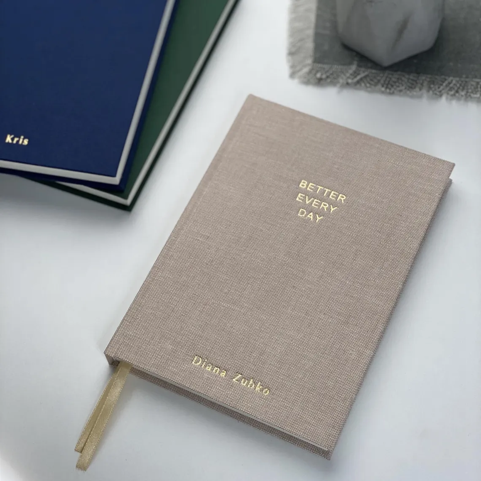 Journal personnalisé avec impression personnalisée, doré en relief, format A5, couverture rigide, carnet de notes, couverture en tissu de lin, planificateur