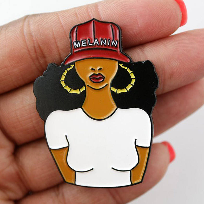 Nom de l'article:Personnalisé personnalisé émail doux nouveauté afro noir fille épinglettes