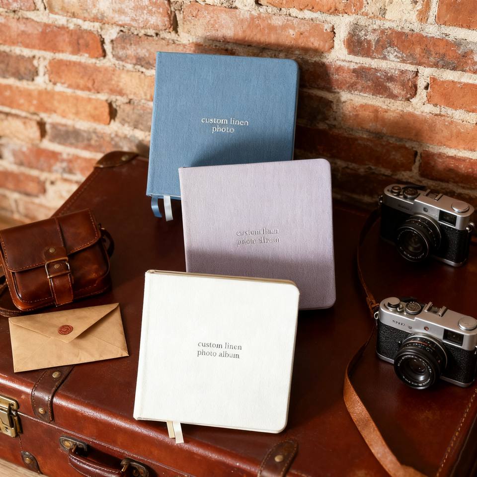Cahier de notes carré en relief avec feuille de texte personnalisée personnalisée, couverture rigide en lin, livre d'or, Journal, livre vierge, Album photo
