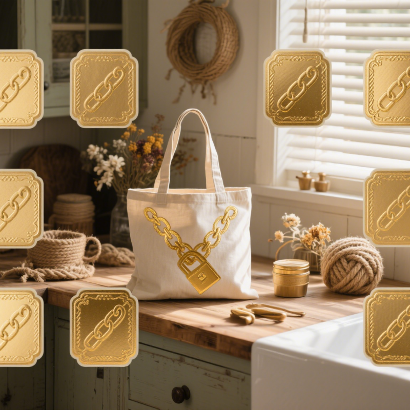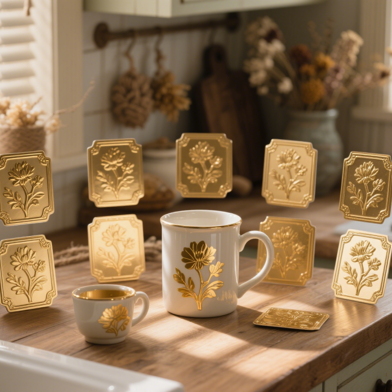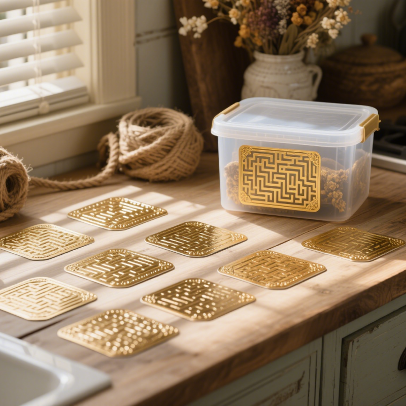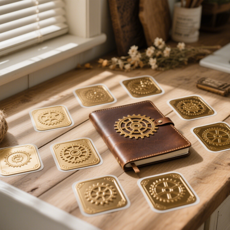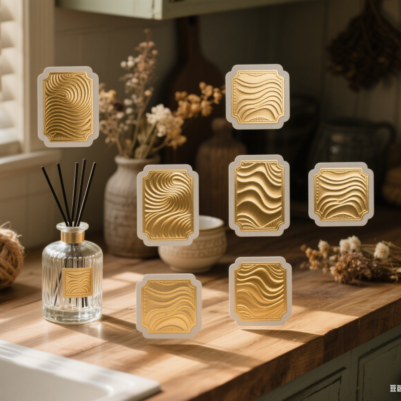Autocollants personnalisés en vinyle adhésif imperméable pour produits alimentaires, étiquette de logo avec impression en feuille d'or et coin rond