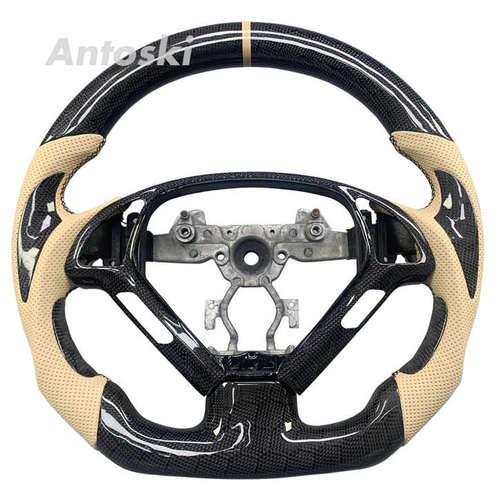 Volant de direction en fibre de carbone véritable personnalisé pour l'intérieur de la voiture, pour Infiniti G37 G25 G35 QX50 QX60 QX70, style sport