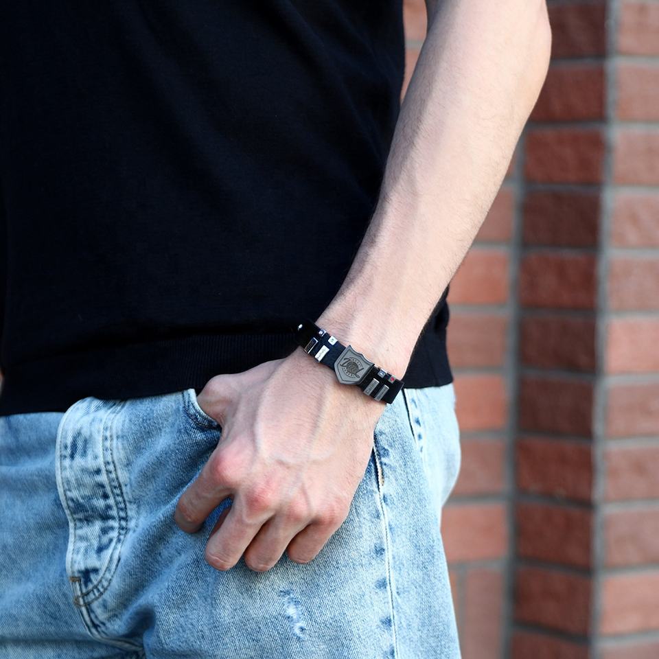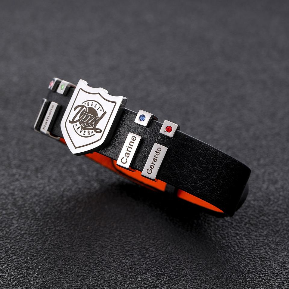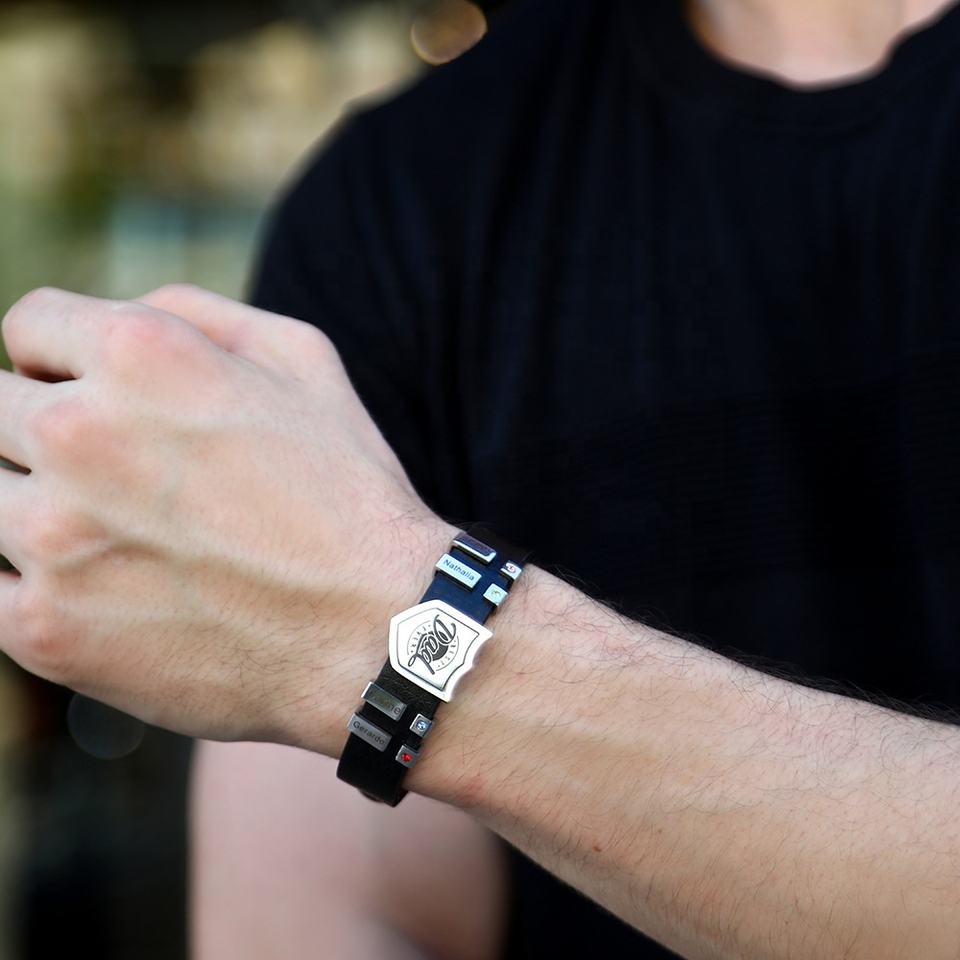 Bracelet à breloques en cuir personnalisé avec nom gravé pour homme