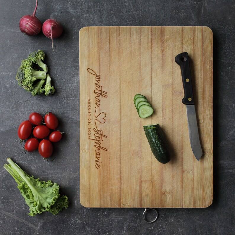 Planche à découper en bois personnalisée Cadeau de mariage ou de fiançailles personnalisé pour couples