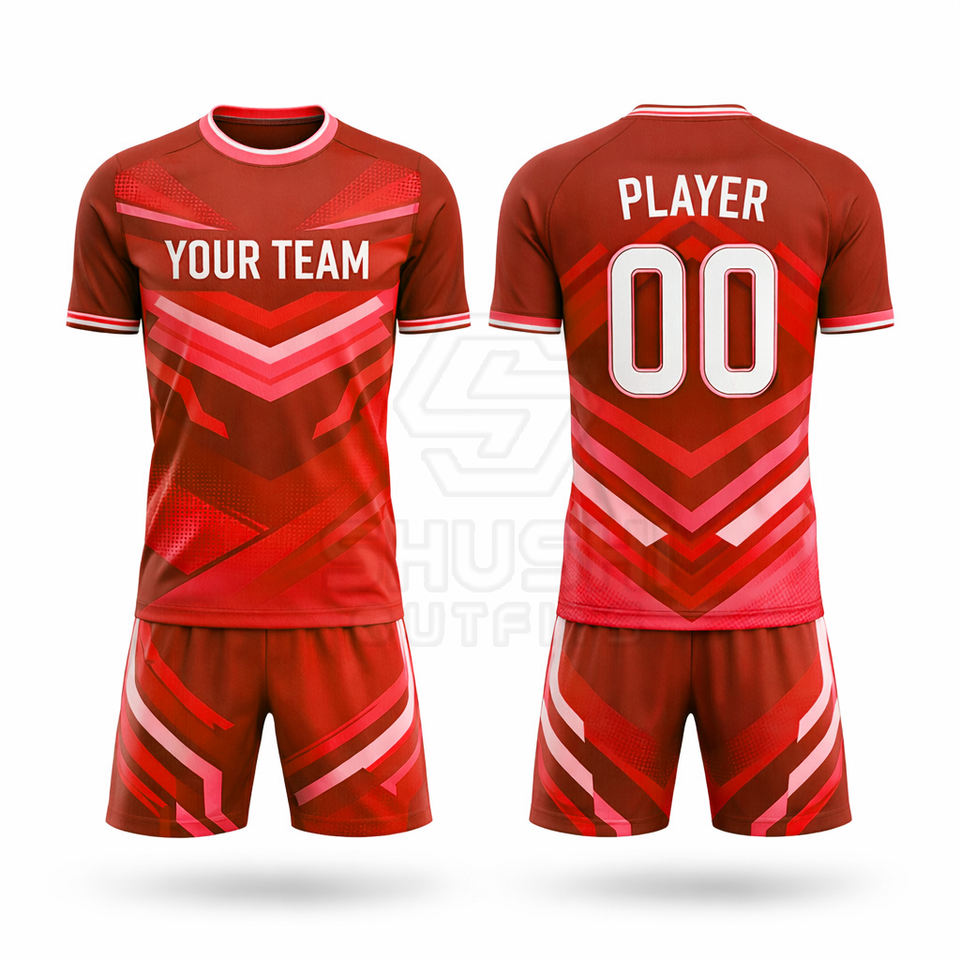 Tenues de football personnalisées, design élégant rouge et blanc, haute qualité, manches longues, été, fabrication OEM, uniformes de football