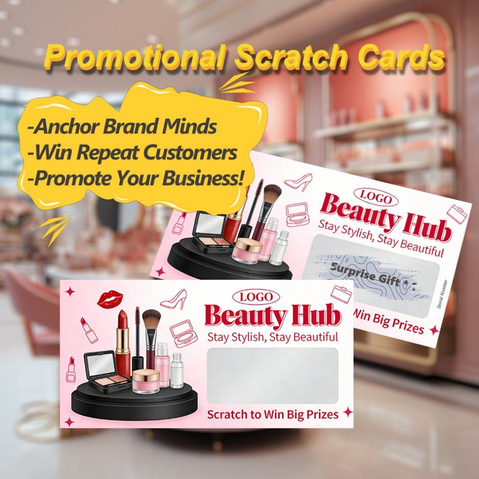 Cartes à gratter personnalisées avec logo imprimé numériquement pour promotion de magasin de maquillage, jeux de gagner, cartes cadeaux en carton personnalisées de remerciement