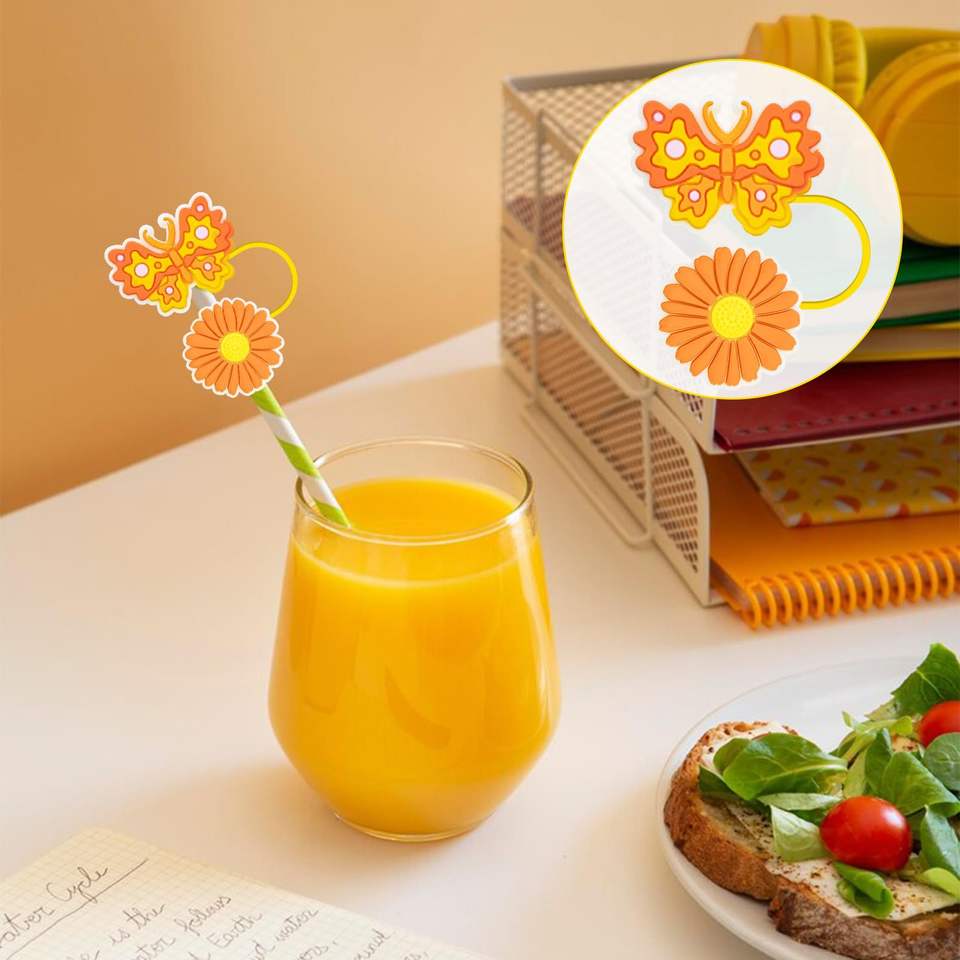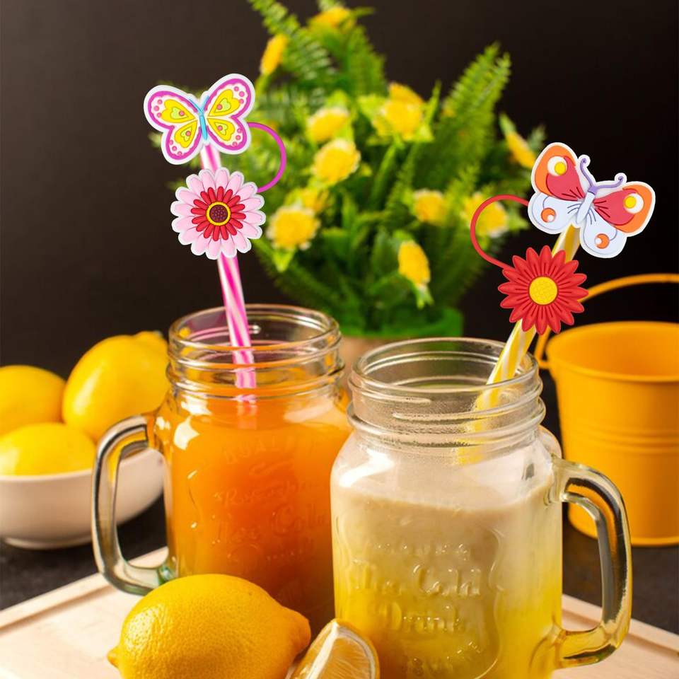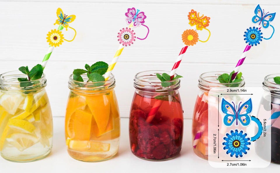 Capuchon de paille à boire papillon double couche personnalisé étui de paille créatif-motif de fleurs-cache-poussière détachable pour les fêtes