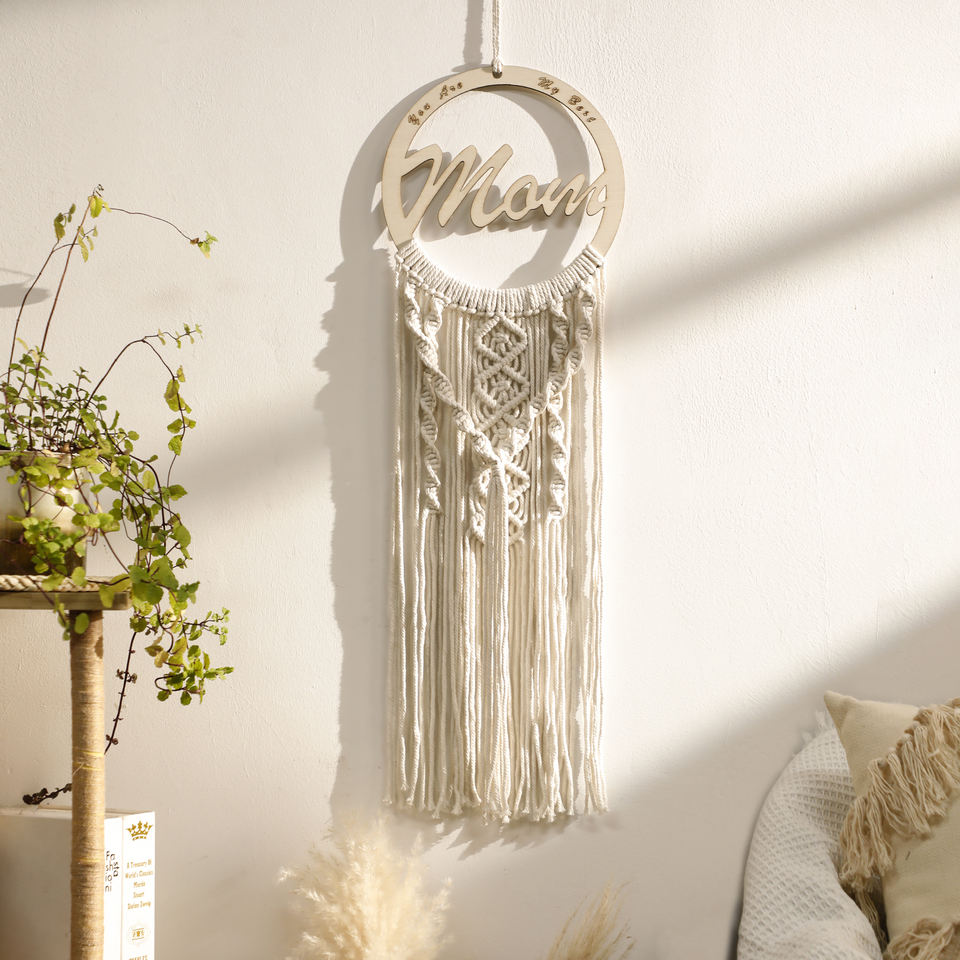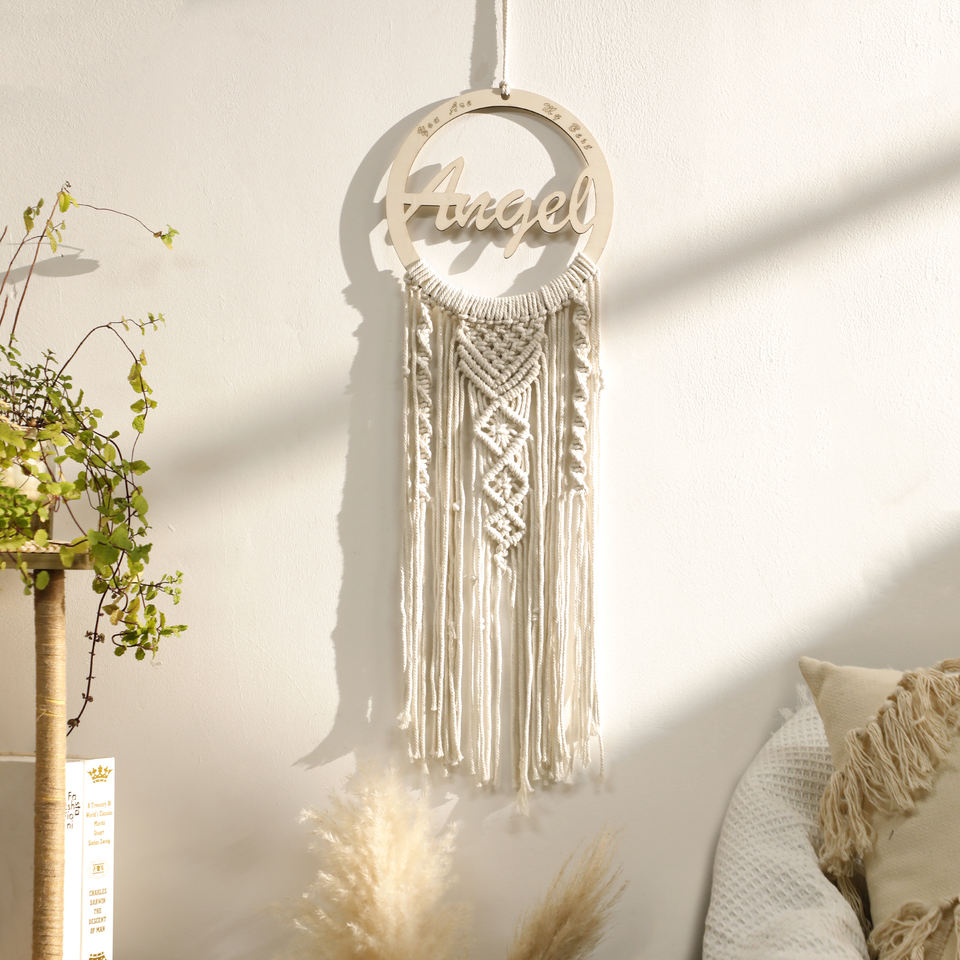 Attrape-rêves personnalisé macramé tenture murale décor de pépinière maman ange nom signe attrape-rêves broderie Ramadan décor de mariage