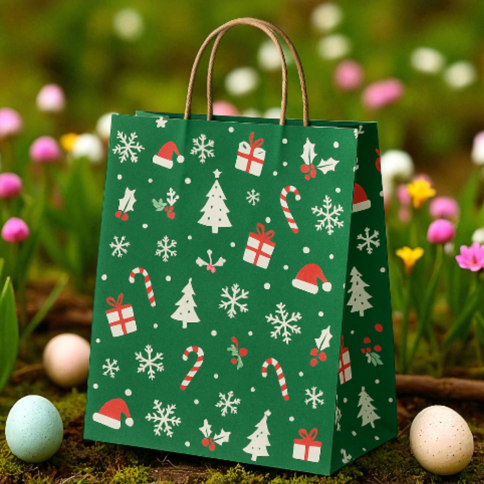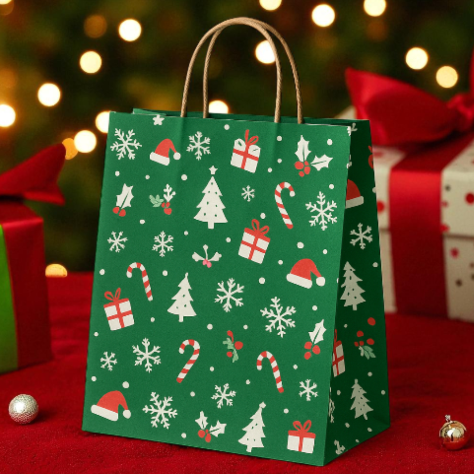 Personalized Eco-Friendly Christmas Paper Shopping Bag Custom UV Printing Recyclable Biodegradable for Boutique Gift Packaging