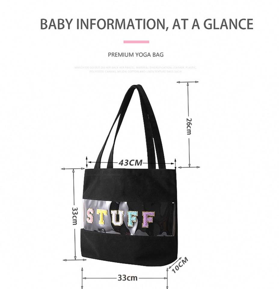 Sac à main en toile de coton personnalisé avec lettres brodées, sac fourre-tout en toile PVC transparente