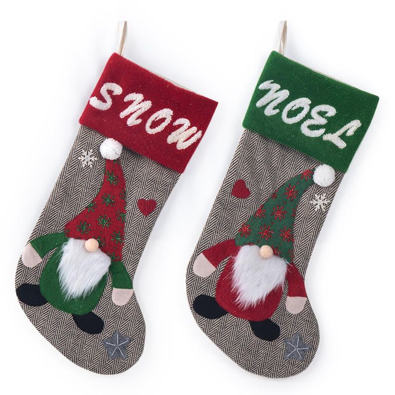 Chaussettes personnalisées brodées avec pompons, chaussettes tricotées adorables, décorations de fête, chaussettes de Père Noël pour enfants
