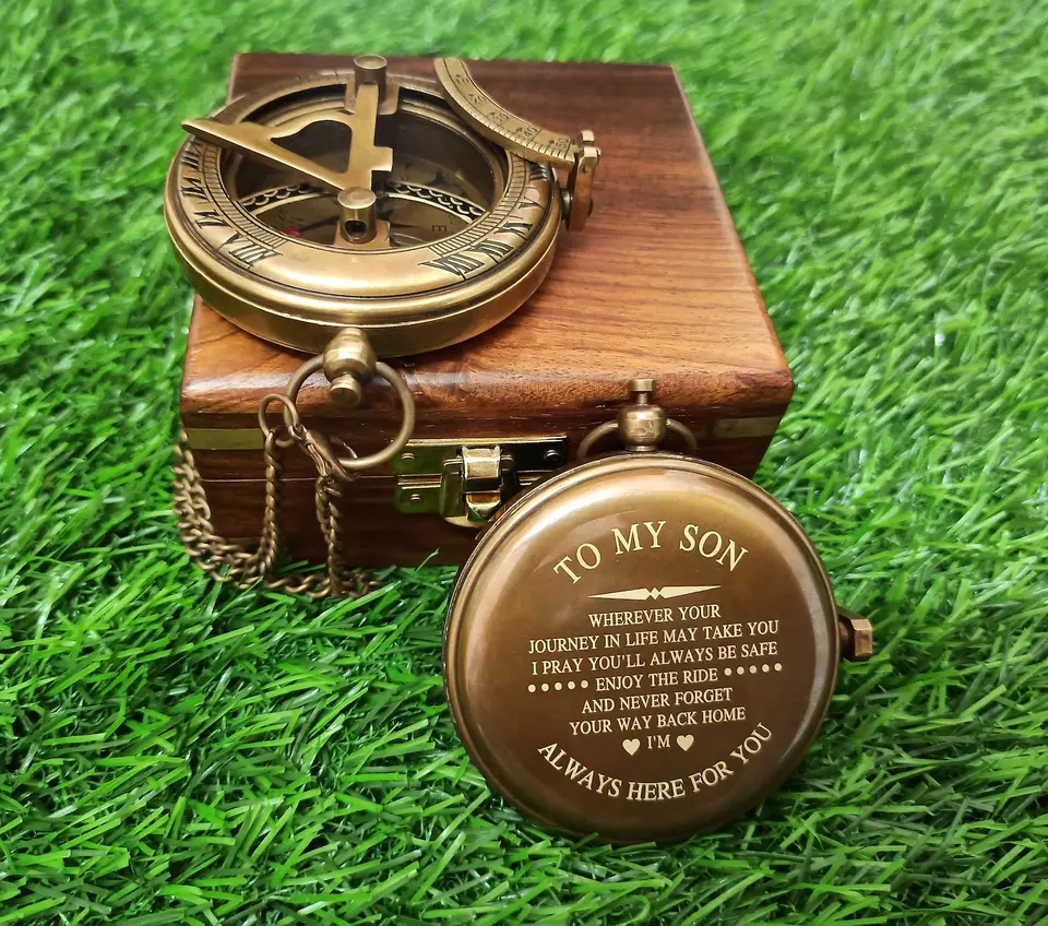 Boussole gravée personnalisée pour lui équipement de navigation à cadran solaire pour anniversaire ou cadeau de la Saint-Valentin