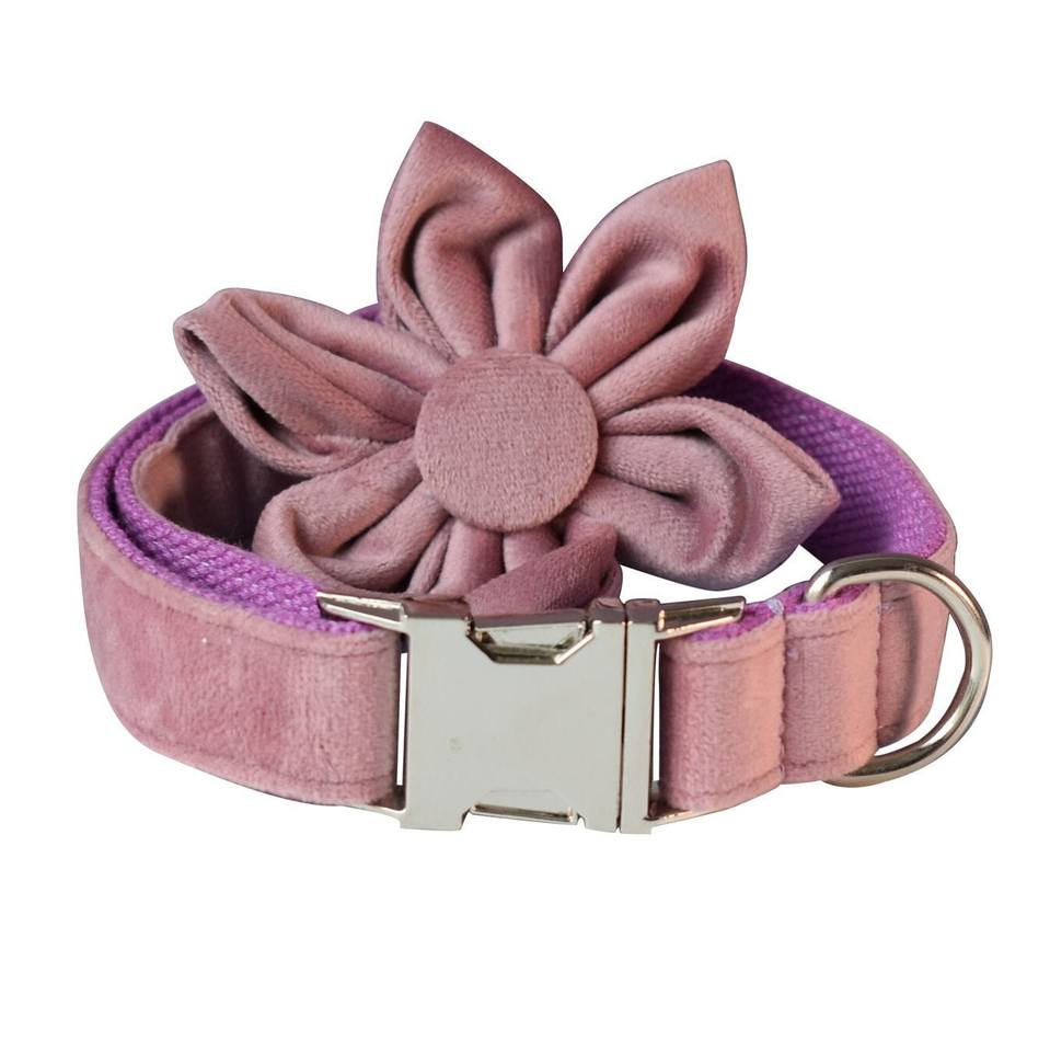 Ensemble de collier de chien en nylon velours épais personnalisé gravé à la main rembourré violet rose Rivet détail correspondant noeud papillon fleur