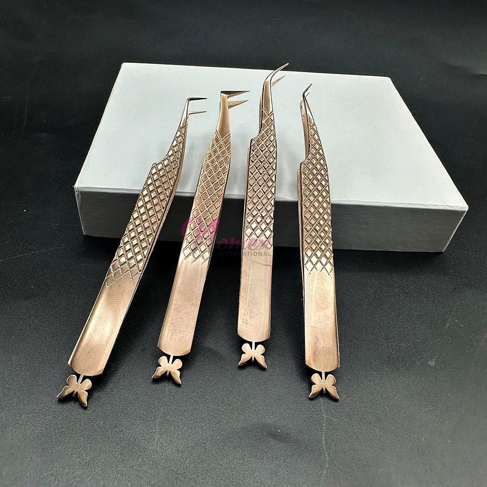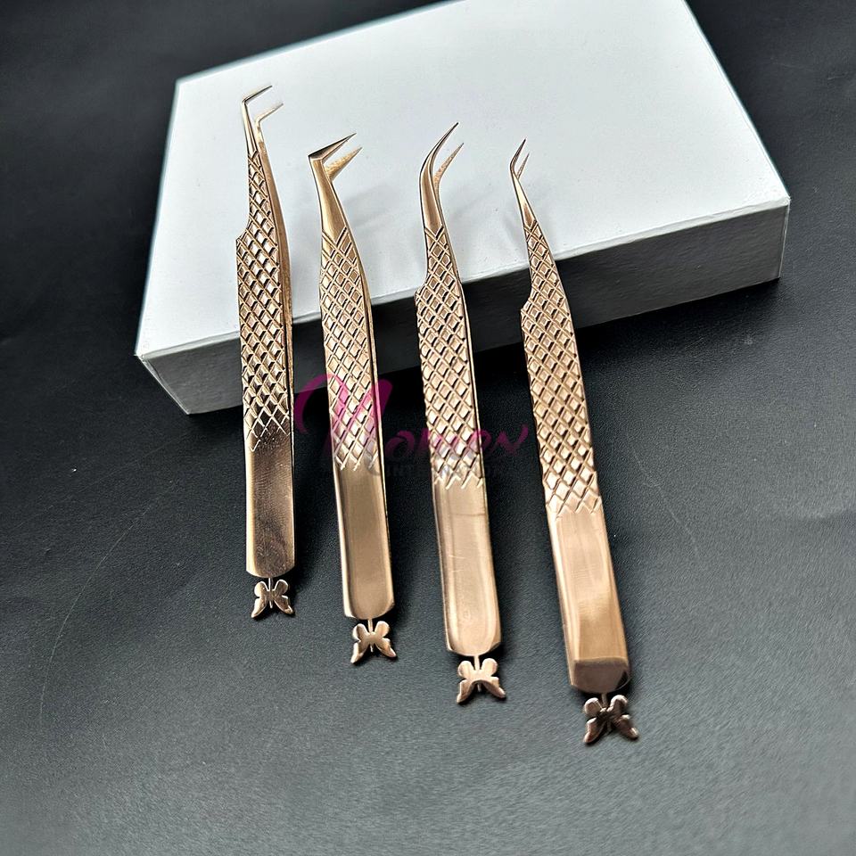 Ensemble de pinces à épiler d'extension de cils personnalisées Pince à épiler de volume incurvée et russe durable Pince à épiler de 45 degrés et 90 degrés à faible coût