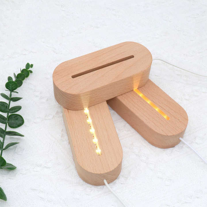 Veilleuse ovale personnalisée en bois avec base LED pour socle en cristal acrylique, contrôle par bouton USB, prise en charge ODM