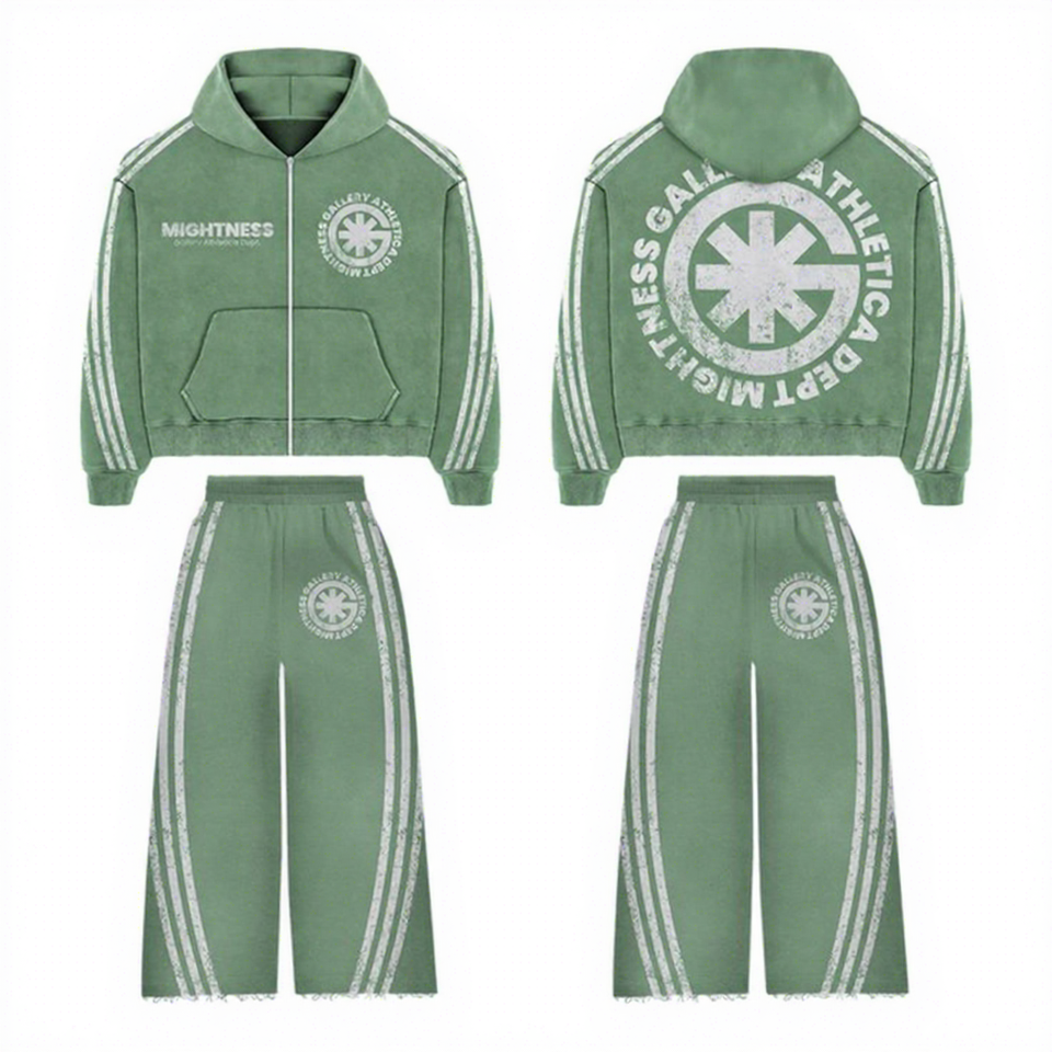 Ensemble de survêtement personnalisé à fermeture éclair intégrale, pantalon large unisexe, style streetwear, ajoutez votre nom de marque avec des designs de hauts