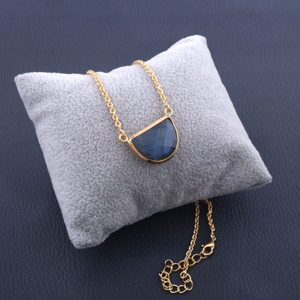 Collier de pierres précieuses personnalisées collier chaîne câblée en labradorite de feu bleu véritable collier pendentif en forme de demi-cercle plaqué or 18 carats