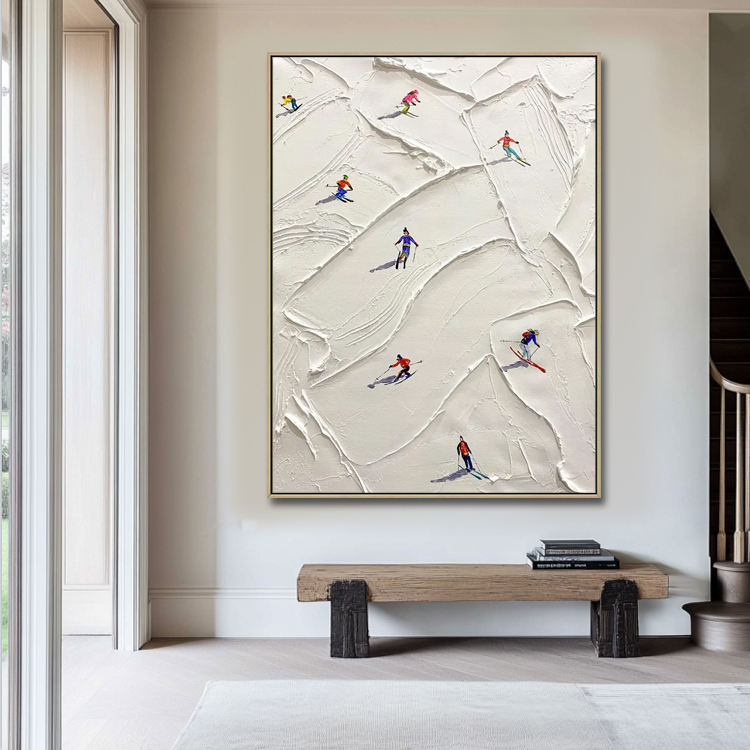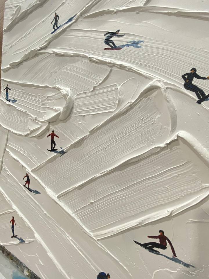 Travail manuel:Peinture moderne texturée de paysage de neige de sport de ski faite à la main