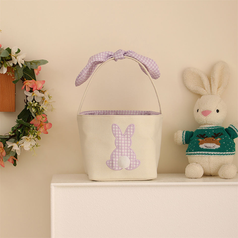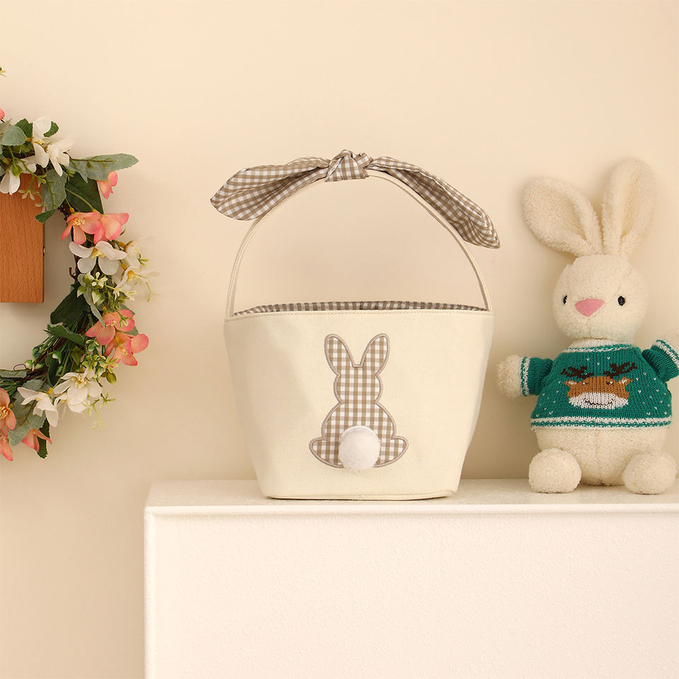 Seau en toile à carreaux personnalisé avec nœud en pompon Mini pour paniers de Pâques pour bébé