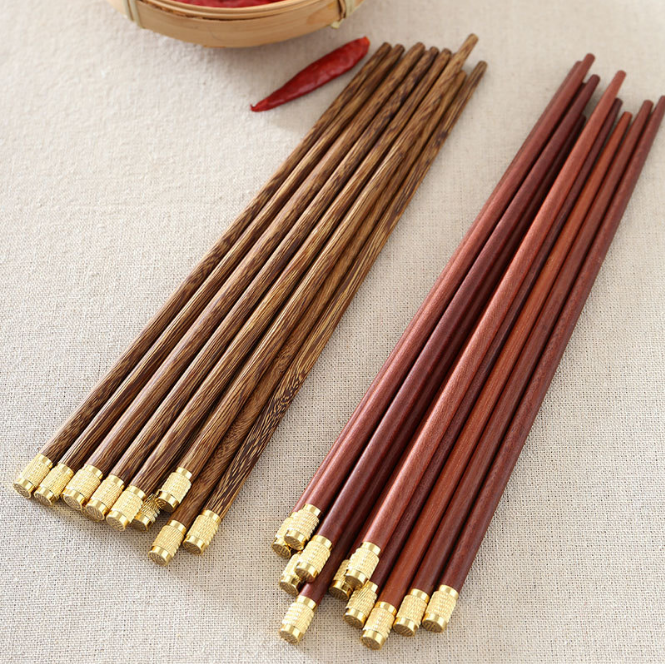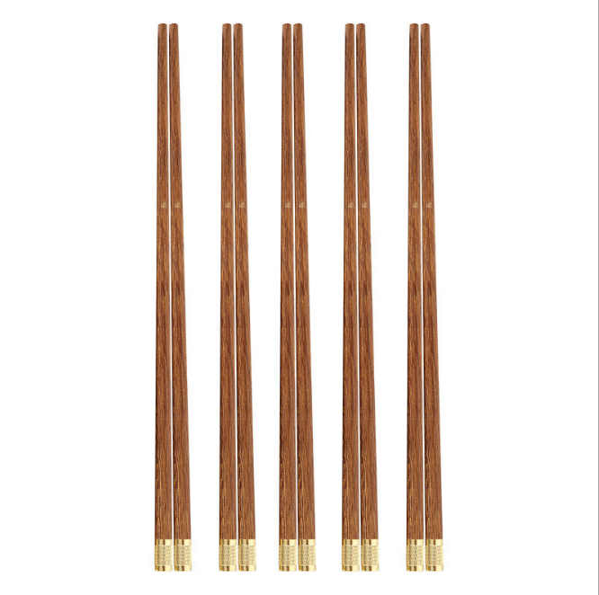 Baguettes de style chinois en bois, 4 pièces, chapeau métallique doré personnalisé, ailes de poulet