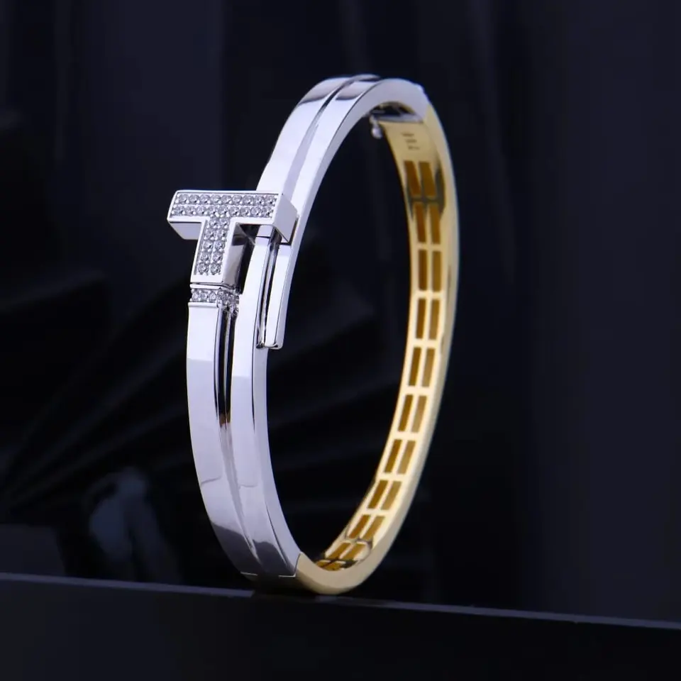 Bracelet de luxe en forme de T, bicolore argent et or, pour femmes, élégant, avec diamants, bijoux de déclaration, cadeau d'anniversaire