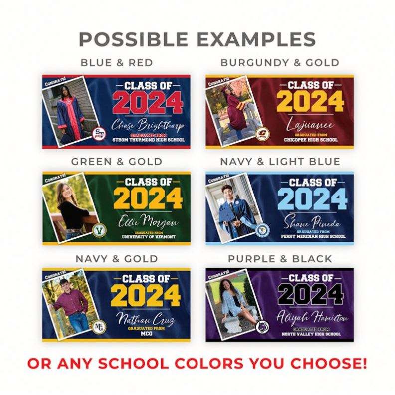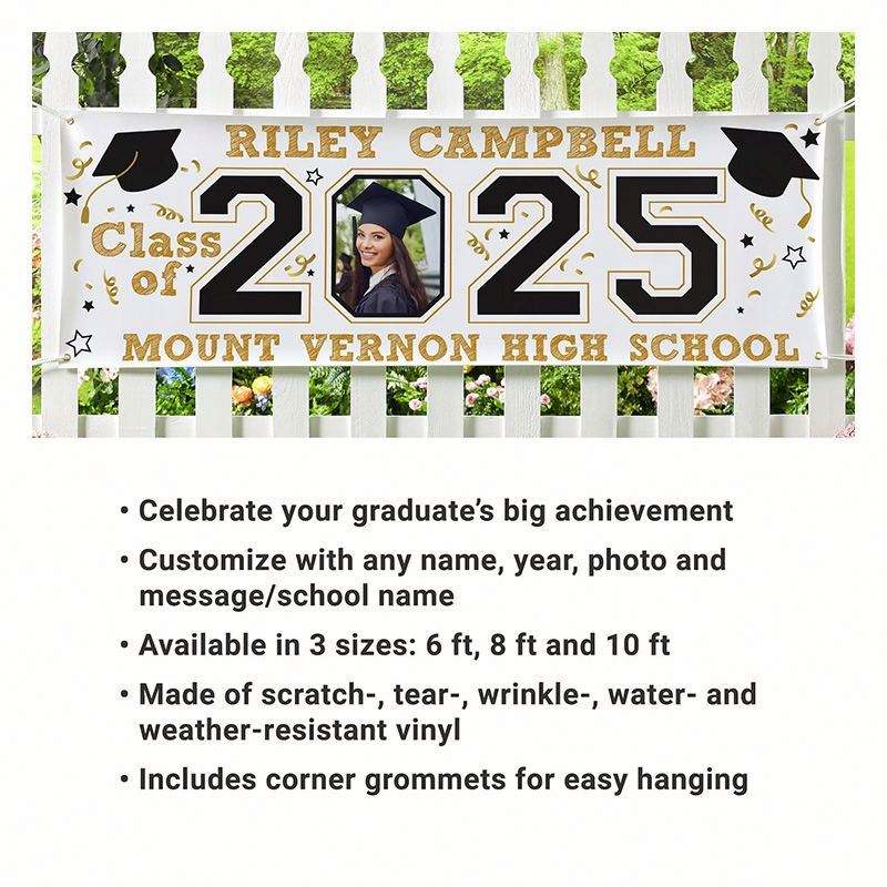 Bannière en vinyle personnalisée pour la remise des diplômes 2025, impression sur mesure aux couleurs de l'école, panneaux de jardin avec photo, cadeaux de remise des diplômes