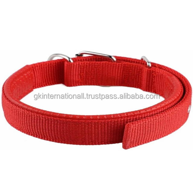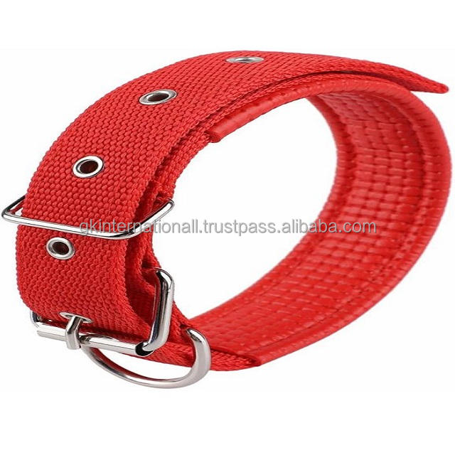 Personalized Handmade Wholesale Price Nylon Webbing Red Nylon Dog Collars Stainless Steel Nickel Plated Roller Buckle D Ring