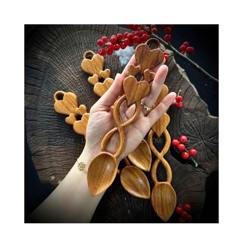 Personalized Heart Chain Engraved Wooden Spoon Features Artic Custom Logo Spoon For business Gift or Restaurant decoration