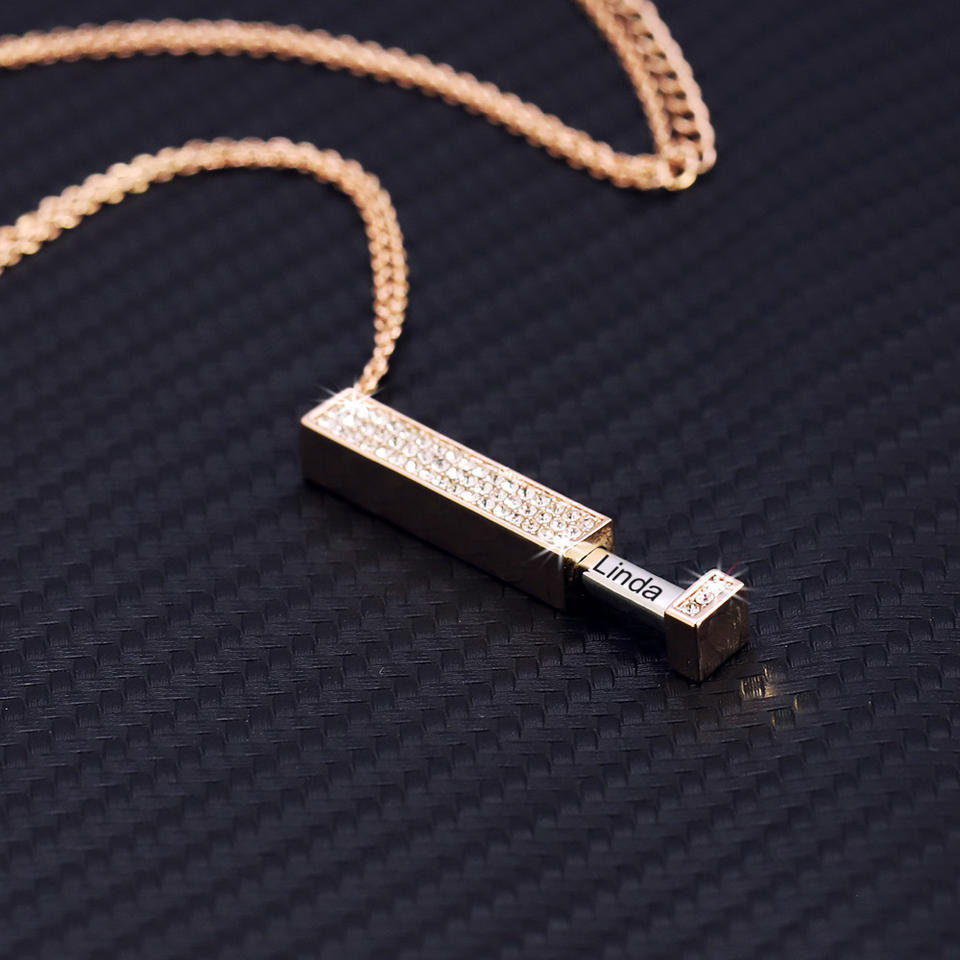 Mylongingcharm Collier coulissant à message secret, inox & laiton, barre rétractable gravée 3D, tube carré 6×29,7 mm NL-023