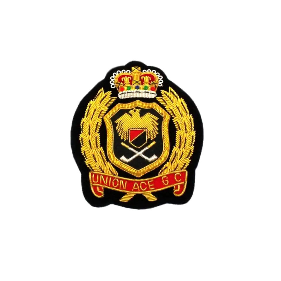 Badges de blazer personnalisés de haute qualité, faits à la main, avec broderie en fil d'or