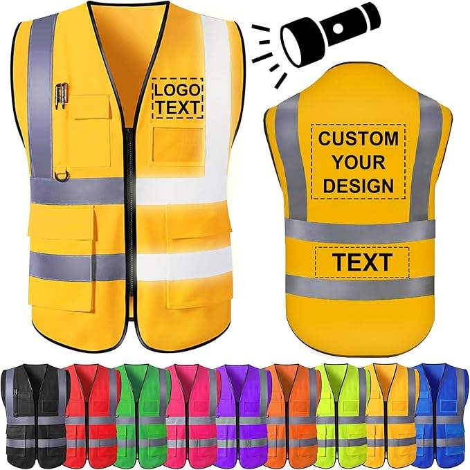 Gilet de sécurité haute visibilité personnalisé, vêtements de travail, logo personnalisé, homologué ANSI, maille respirante avec poches pour la construction et les entreprises