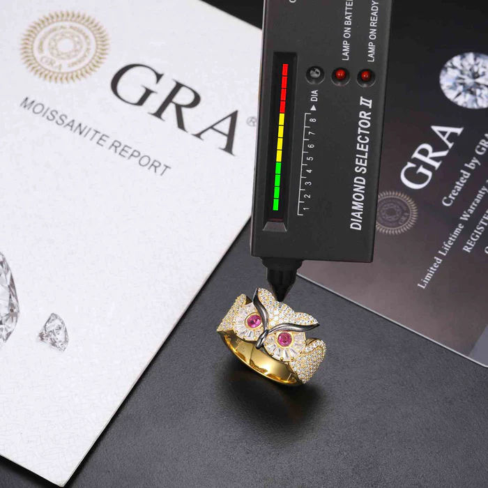 Bague personnalisée en or massif 14 carats, style hip-hop, avec diamants ronds et baguettes glacés, hibou cultivé en laboratoire pour hommes