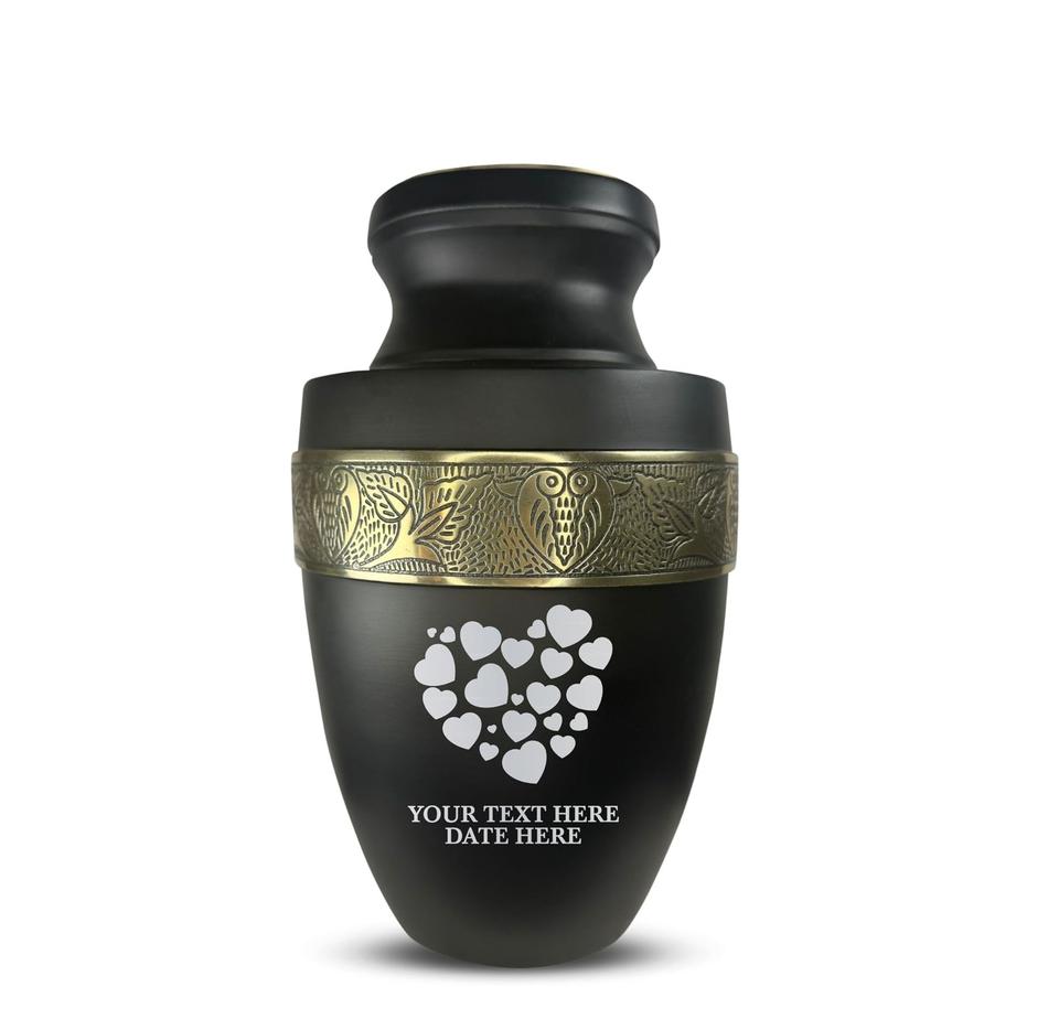Urne de crémation humaine personnalisée pour cendres adultes Hommes Femmes Urne en aluminium avec nom Date Design avec jante argentée Taille personnalisée