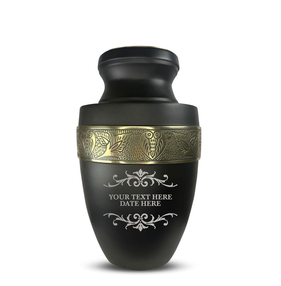 Urne funéraire personnalisée pour cendres d'adultes, hommes et femmes, en aluminium, avec nom, date et design, noire avec bordure argentée, taille personnalisée