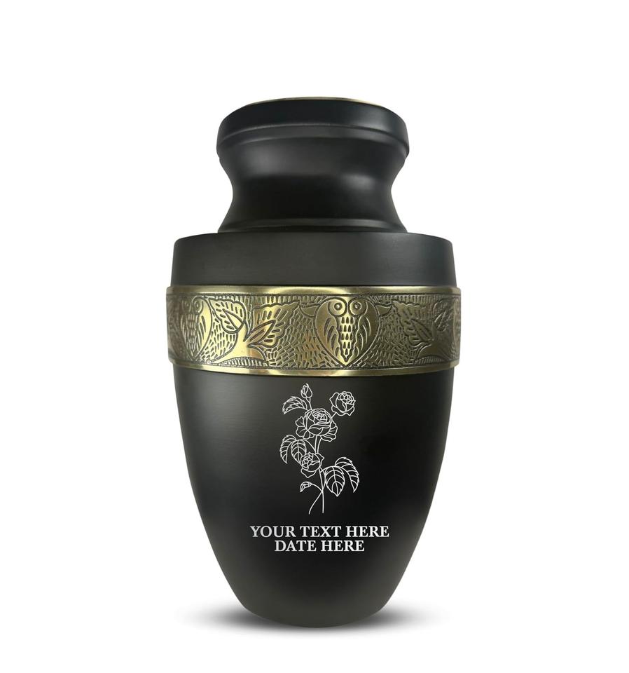 Urne funéraire personnalisée pour cendres d'adultes, hommes et femmes, en aluminium, avec nom, date et design, noire avec bordure argentée, taille personnalisée