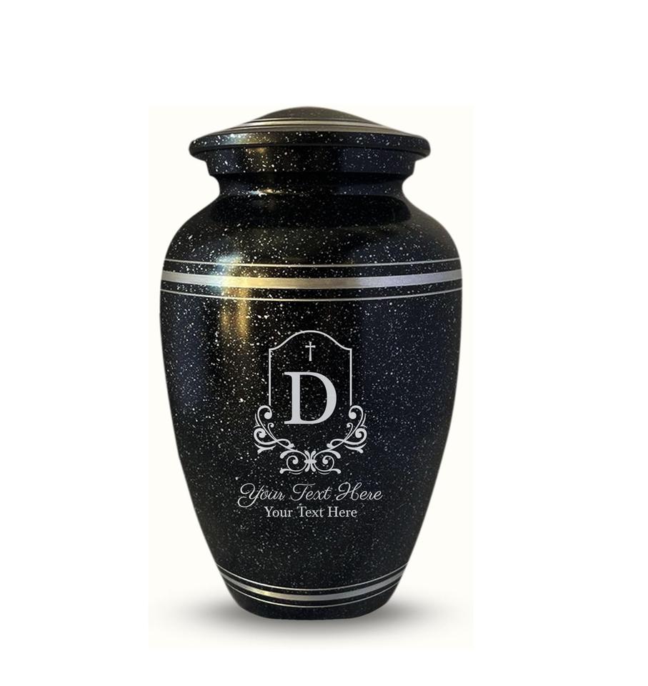 Urne de crémation humaine personnalisée pour cendres adultes, urne en aluminium avec nom, date, design, noire avec bord argenté, taille personnalisée