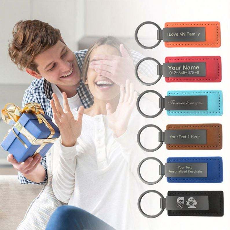 Porte-clés personnalisé en cuir PU, vente en gros, avec logo, cadeau d'entreprise