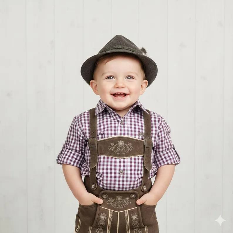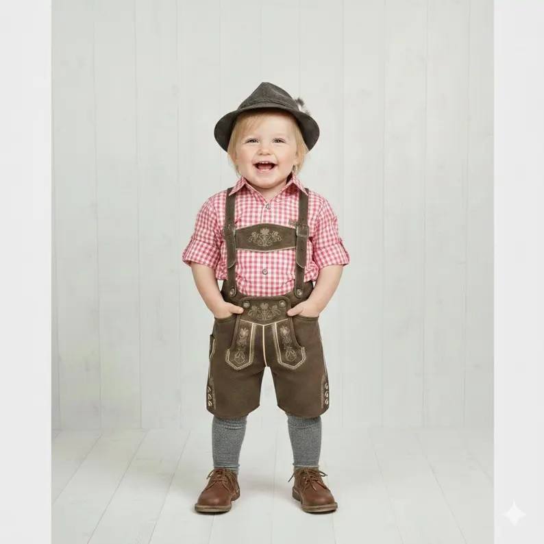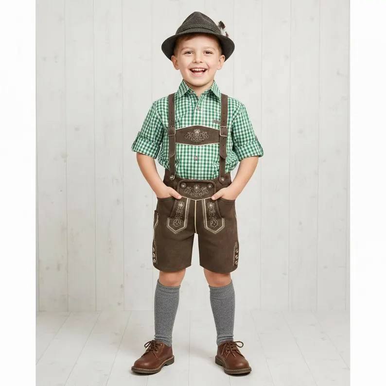 Ensemble de Lederhosen Personnalisé pour Enfants, Broderie de Logo Personnalisée, Cuir Véritable de Haute Qualité, Tenue Bavaroise pour l'Oktoberfest pour Garçons