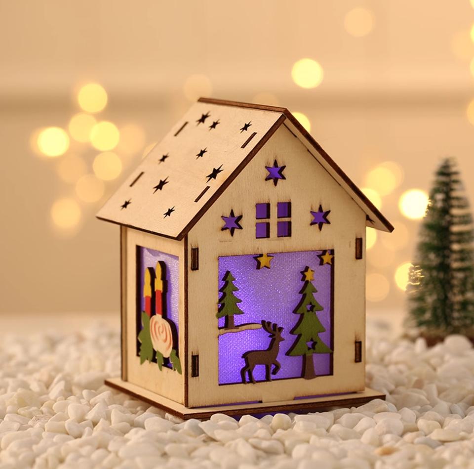 Ornement de sapin de Noël en bois LED personnalisé, mini cabane lumineuse, décoration artisanale pour la décoration des fêtes