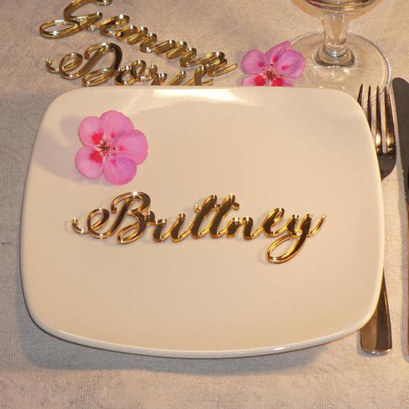 Cartes de Place en Acrylique Doré Personnalisées avec Noms Gravés au Laser – Idéales pour Mariages et Réceptions