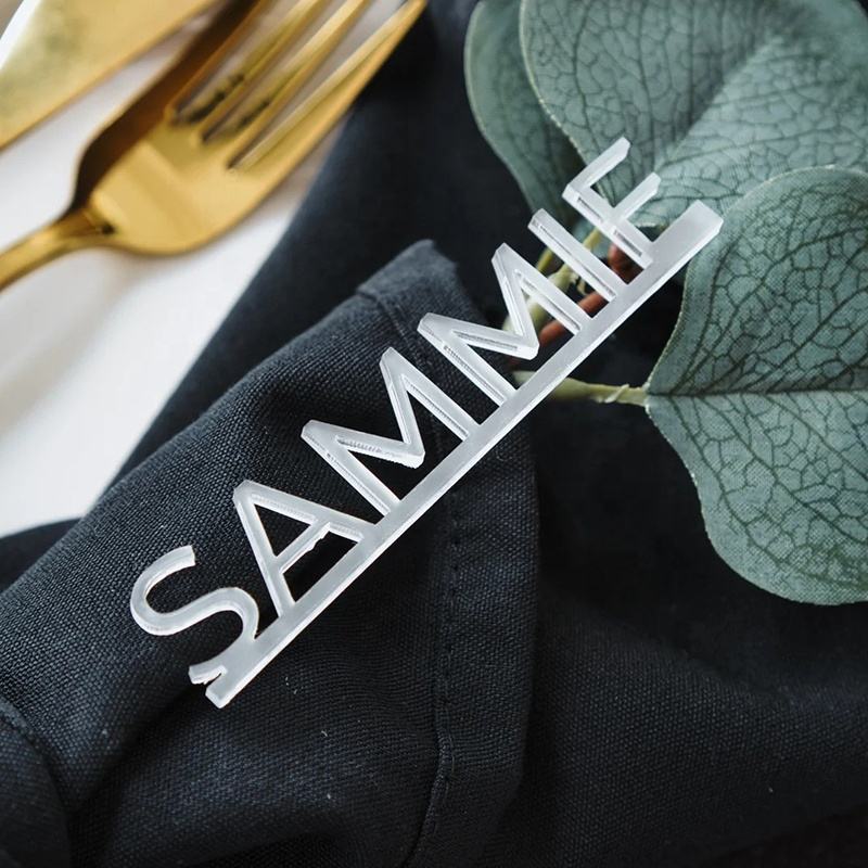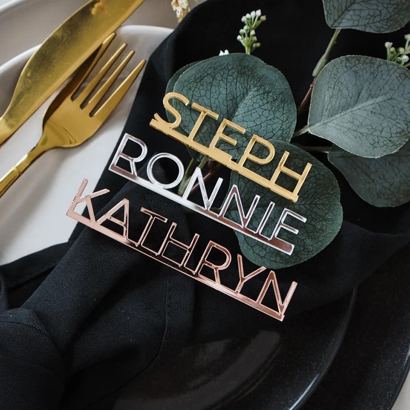 Cartes de Place de Mariage Personnalisées en Acrylique Miroir Doré Découpé au Laser, Étiquettes de Nom Personnalisées pour l'Aménagement des Tables et la Décoration