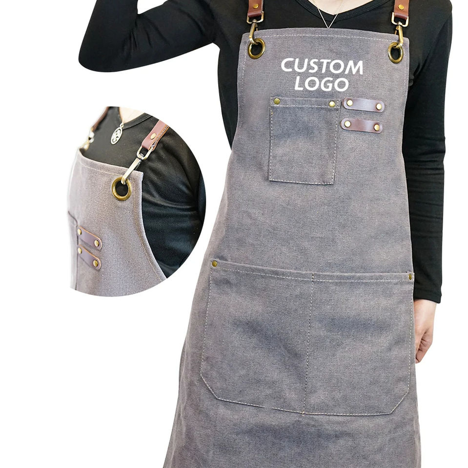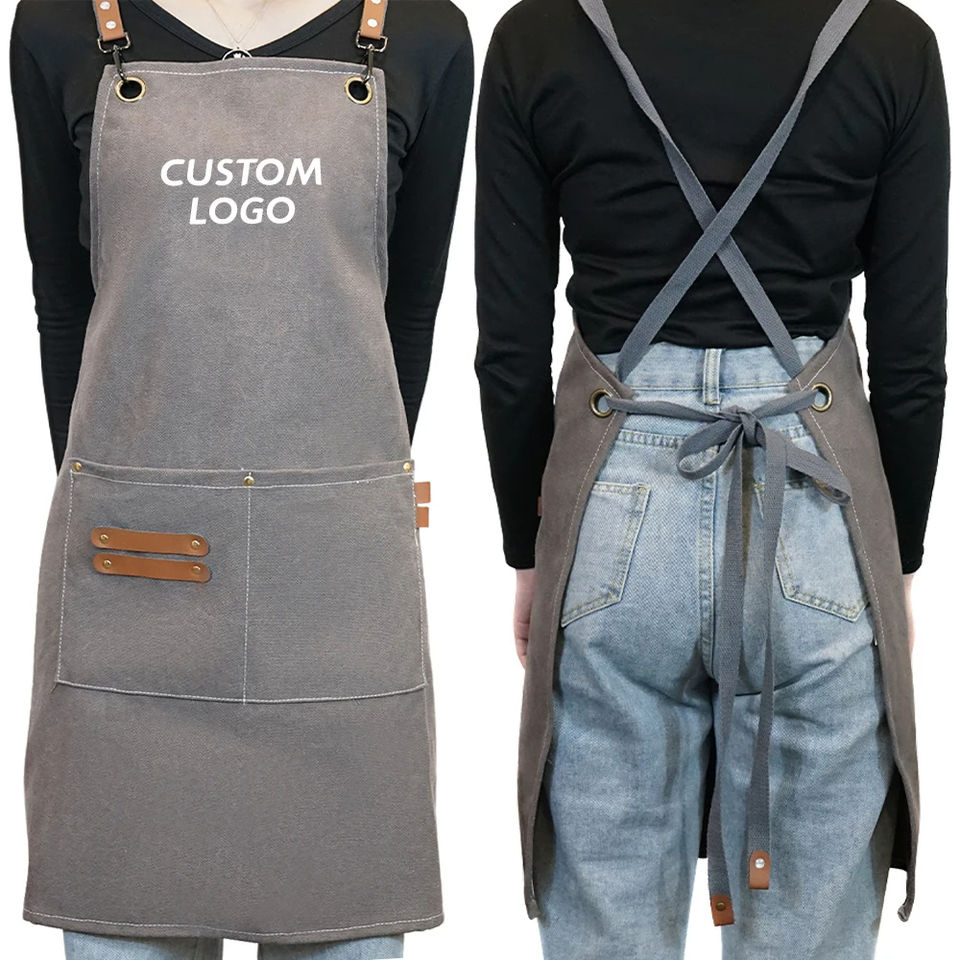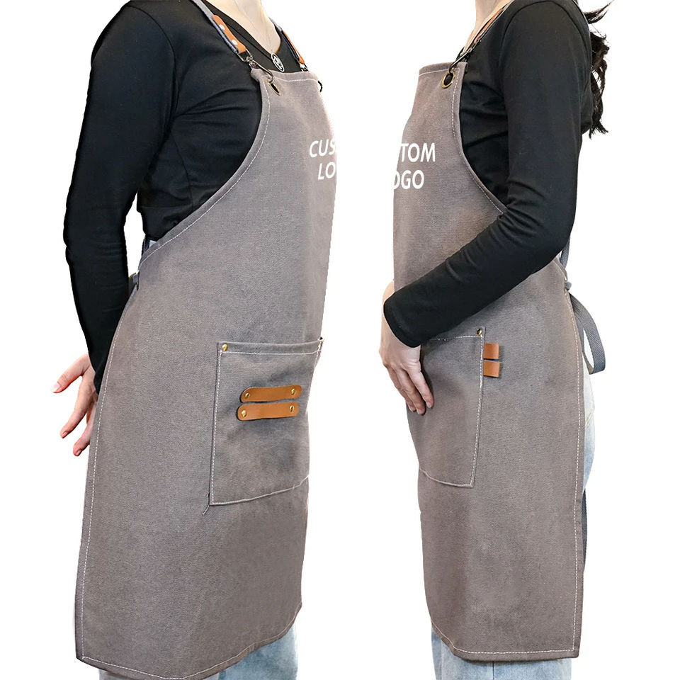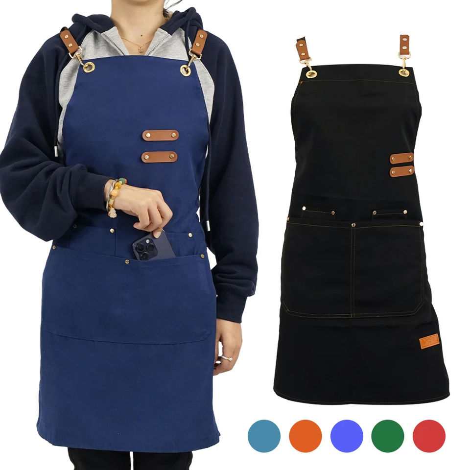 Tabliers de Travail en Toile avec Poches à Outils Logo Personnalisé Coloré Vert Bleu Marron Café Barista Chef Restaurant Jardin BBQ