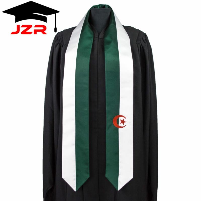 Tenue de graduation personnalisée avec logo brodé, 100% satin, pour étudiants internationaux en échange scolaire, unisexe