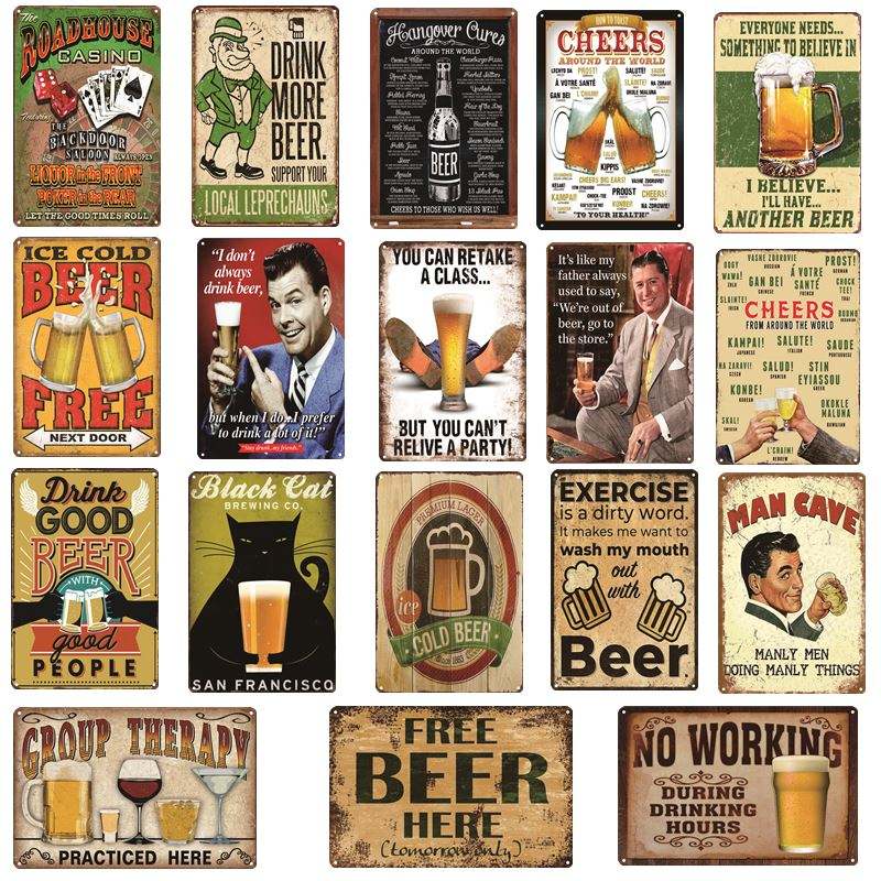 Une pièce par sac d'opp transparent, puis 50 pièces dans une boîte en carton pour étain signe décoration murale Vintage artisanat Art fer peinture étain affiche café boutique Bar Club maison décorer