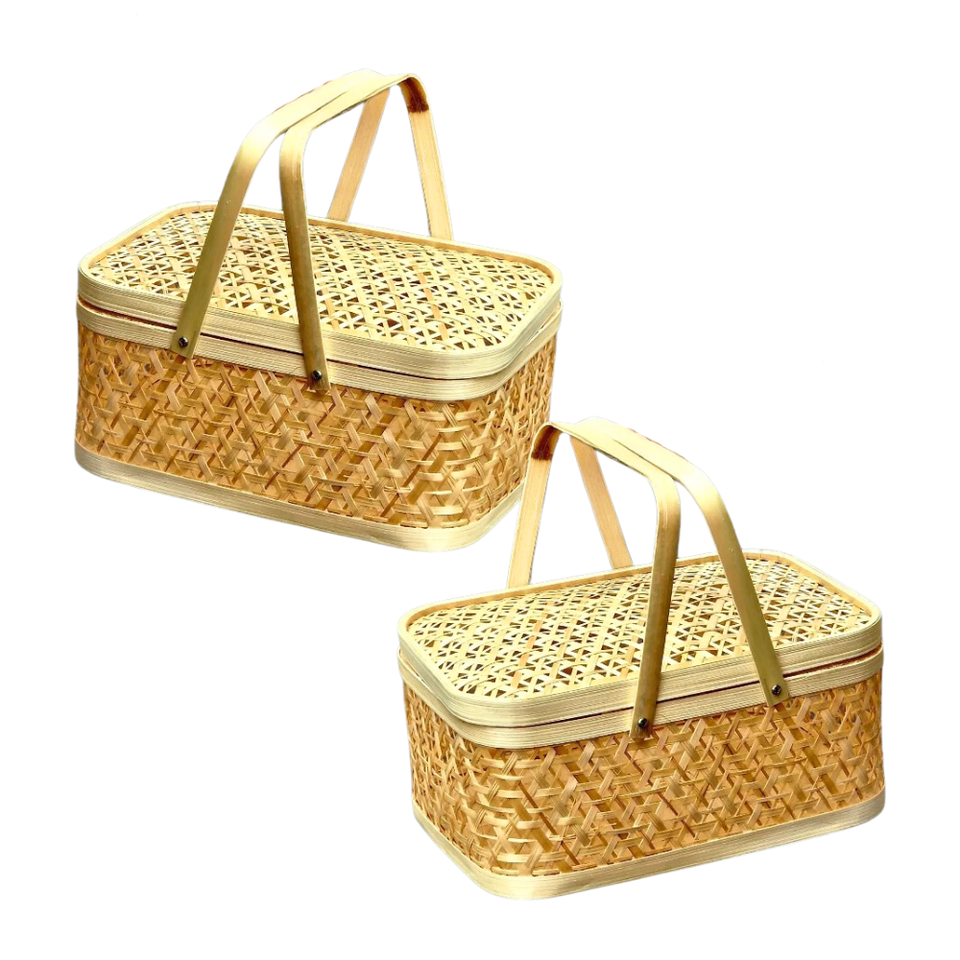 PANIER CADEAU en BAMBOU polyvalent personnalisé PANIER DE FRUITS Pique-nique durable et réutilisable, rangement Décoration intérieure