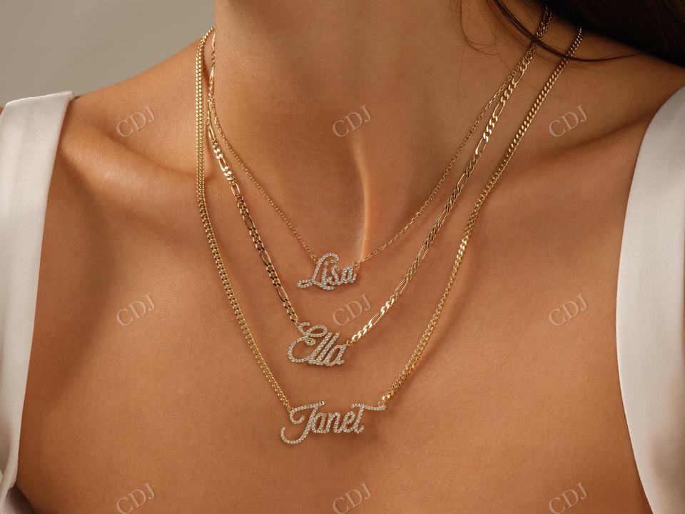 Personalized Name Necklace with Cable Chain for Women 14K/18K Gold Plated Sterling Silver & 18K Gold VVS Clarity Moissanite