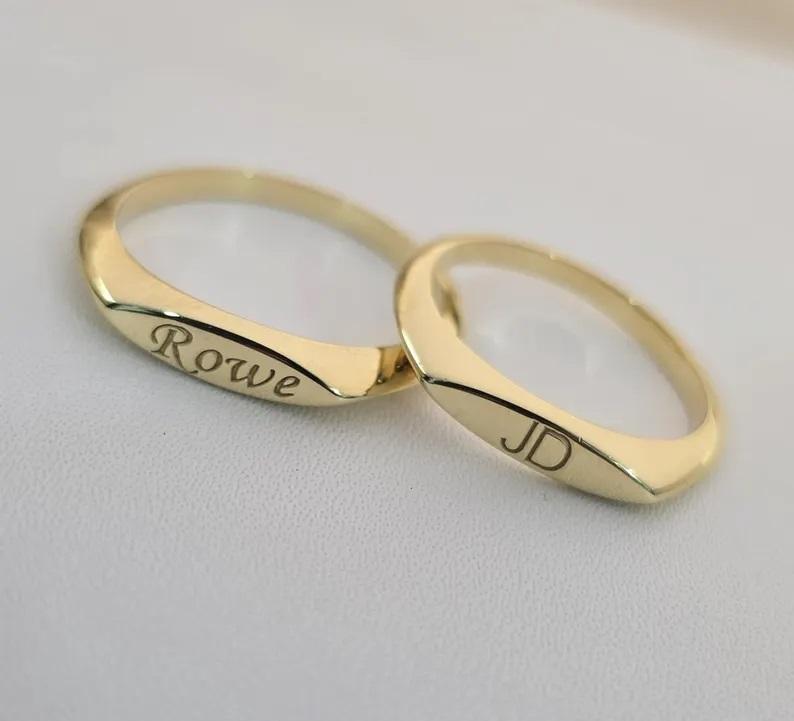 Bague signet ovale personnalisée avec nom, Bague délicate gravée avec nom, Cadeau pour la Fête des Mères/Anniversaire pour Elle/Épouse/Famille/Amies