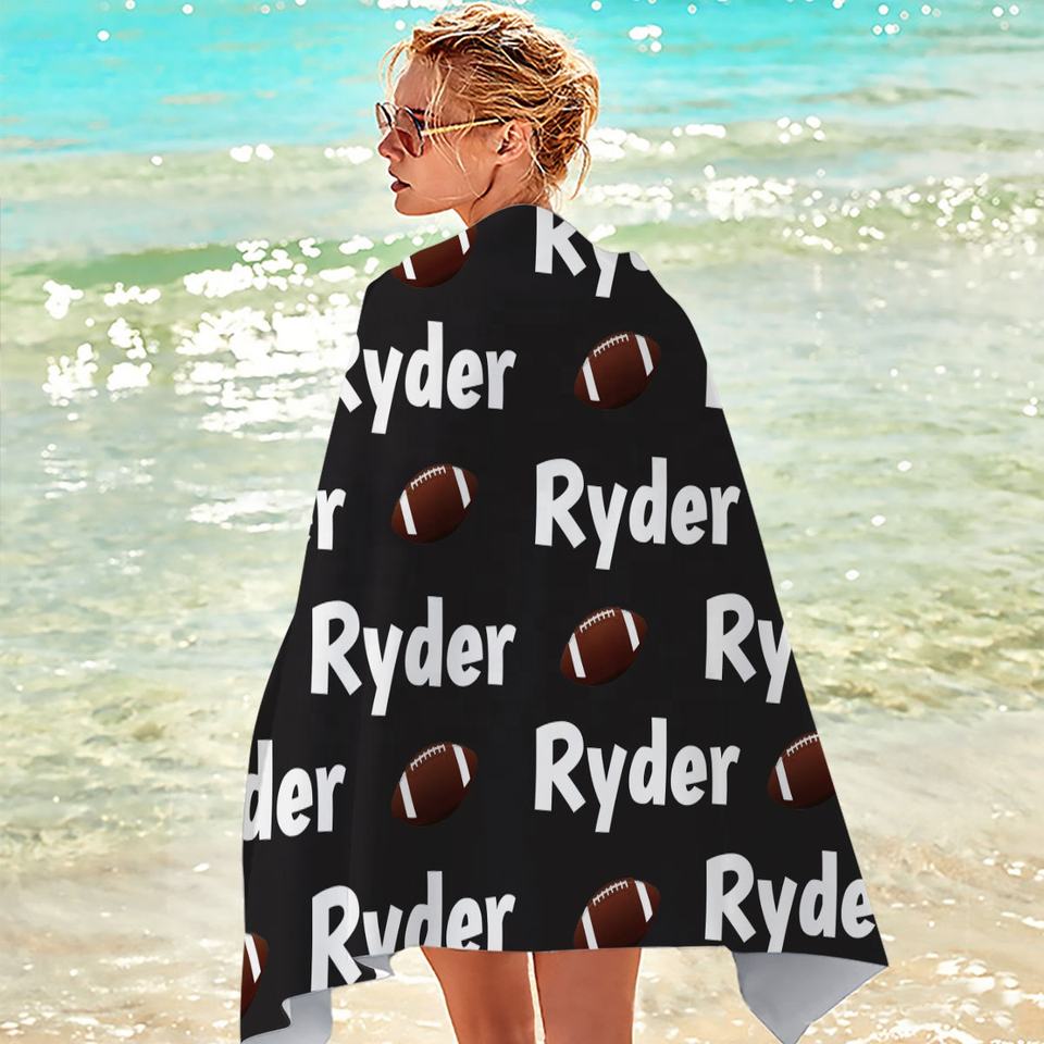 Serviette de plage en microfibre imprimée avec nom personnalisé pour les sports d'été Serviette tricotée en polyester pour le football, le basket-ball et le football