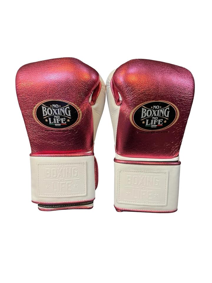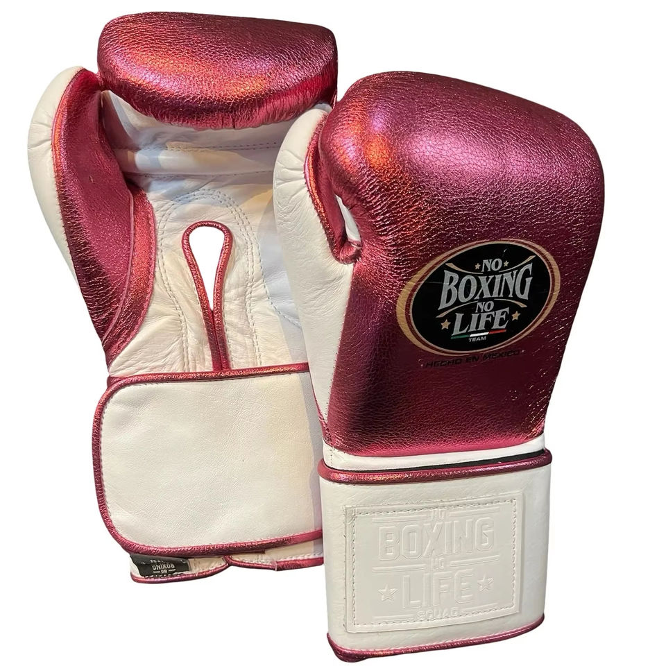 Gants de boxe Sanda personnalisés en cuir de vachette premium avec fermeture auto-agrippante, rose-blanc métallisé extensible – Sans boxe, pas de vie
