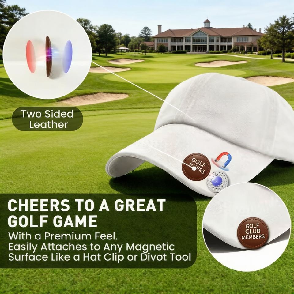 Marqueur de balle de golf personnalisé en cuir PU avec logo sur mesure, aides d'entraînement de golf pour hommes, cadeaux de golf pour grand-père