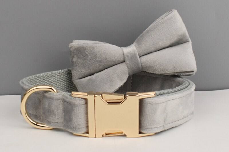 Harnais rembourré personnalisé pour chiens de petite/moyenne/grande taille, velours gris, collier pour chien personnalisé, nœud papillon, porte-sac à crottes, nylon, alliage